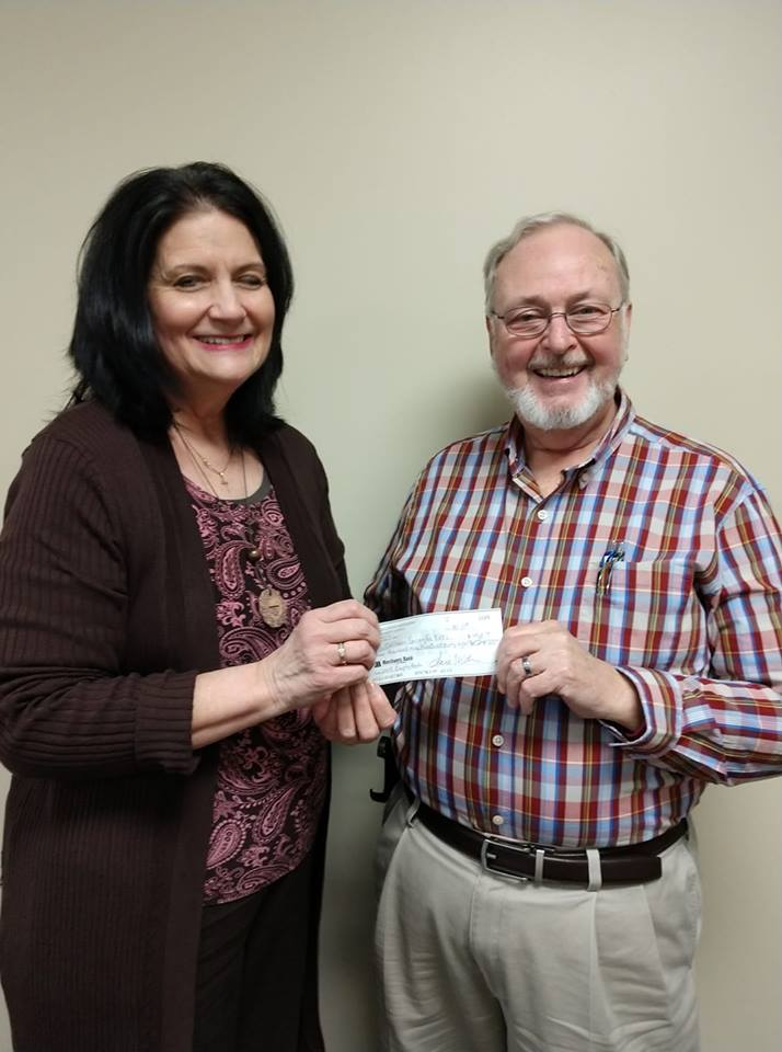 Empty Bowls Coordinator Tanya Shearer presents Cullman Caring for Kids Director Javon Daniel a check, bringing the 2019 Empty Bowls of Cullman County Chili Dinner's total contribution to the food bank to $14,000. (contributed)