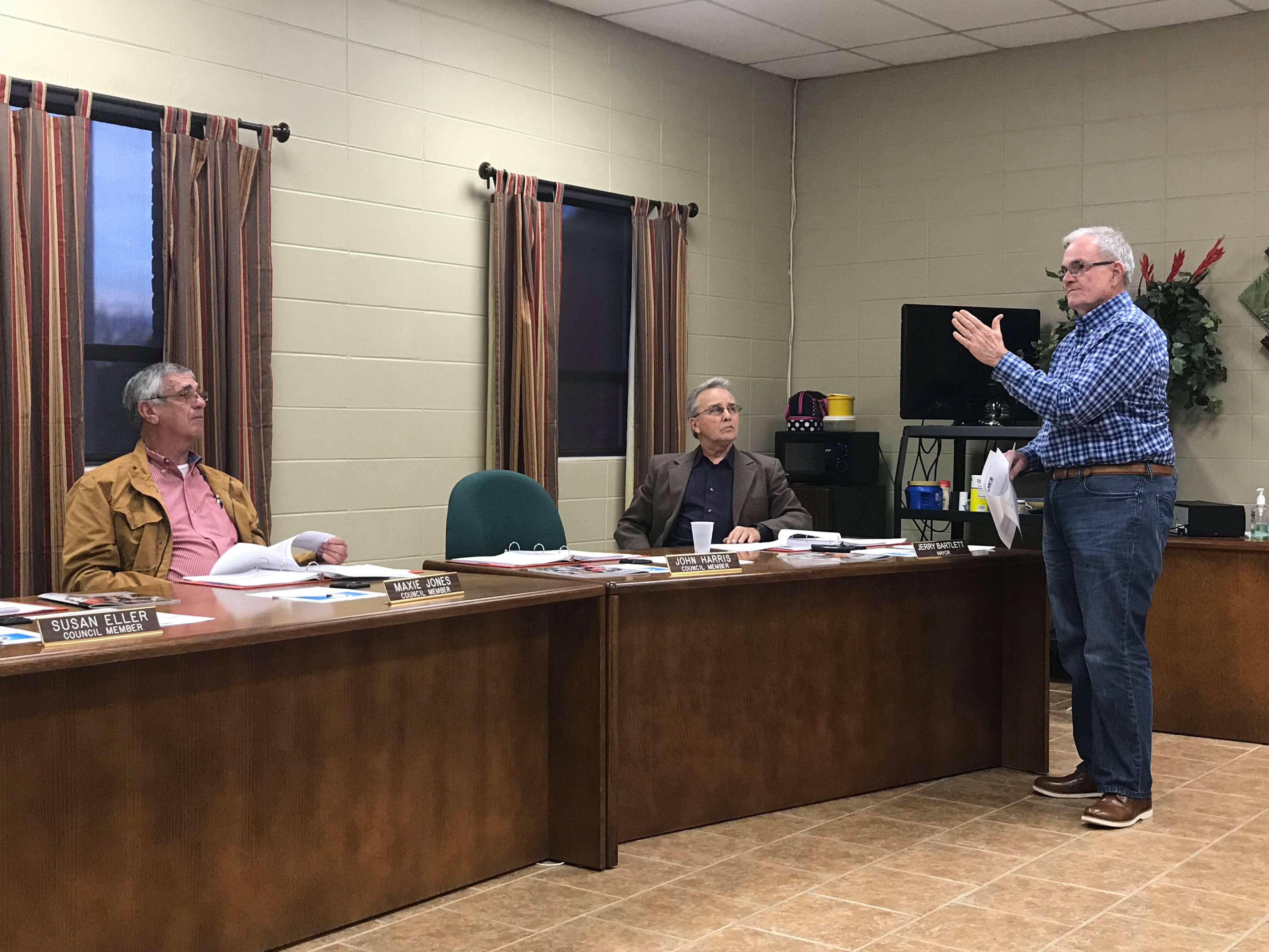 Living Water Services President Grady Parsons addresses the Good Hope City Council Monday night. (Christy Perry for The Cullman Tribune)