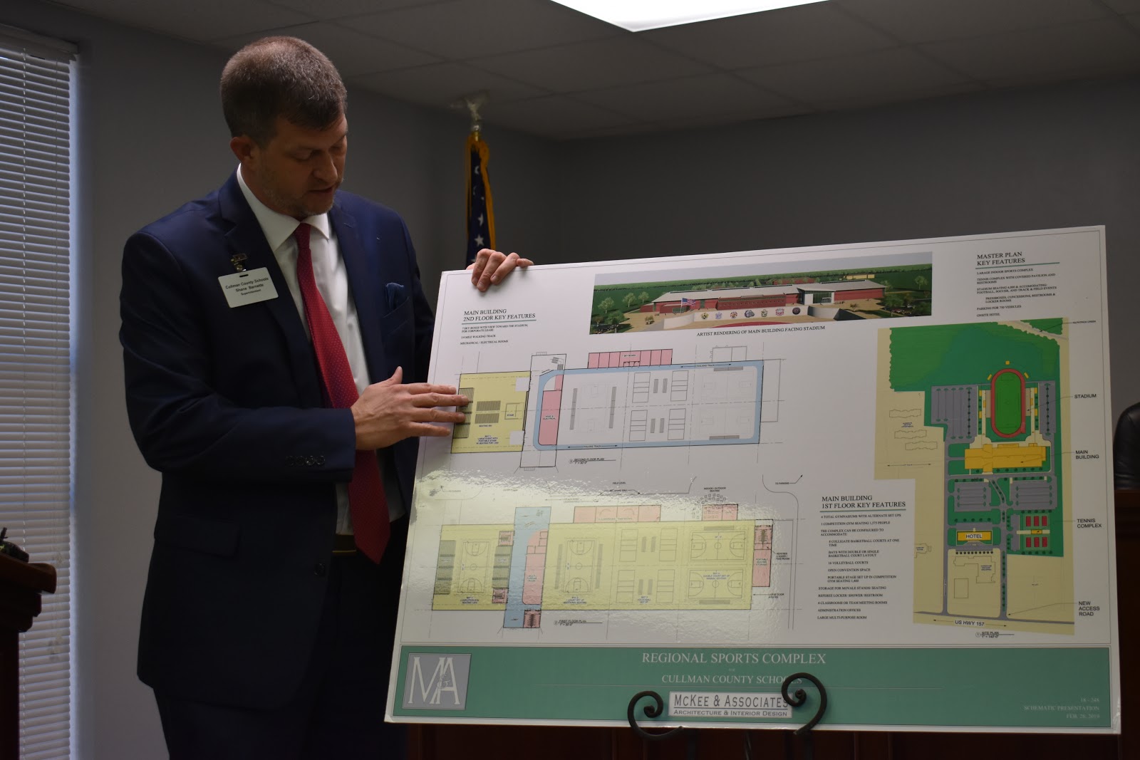 CULLMAN, Ala. – On Tuesday afternoon, Cullman County Board of Education (CCBOE) Superintendent Shane Barnette revealed “Project X” as a multi-use sports and event venue to be located in Cullman, on Alabama Highway 157 near its intersection with I-65. The facility will be located behind Warehouse Discount Groceries, on land donated to the CCBOE by Roy Drinkard. The new county half-cent sales tax, along with lodging tax money contributed by the Cullman Area Chamber of Commerce, will help fund the project which is projected to reach $30 million.