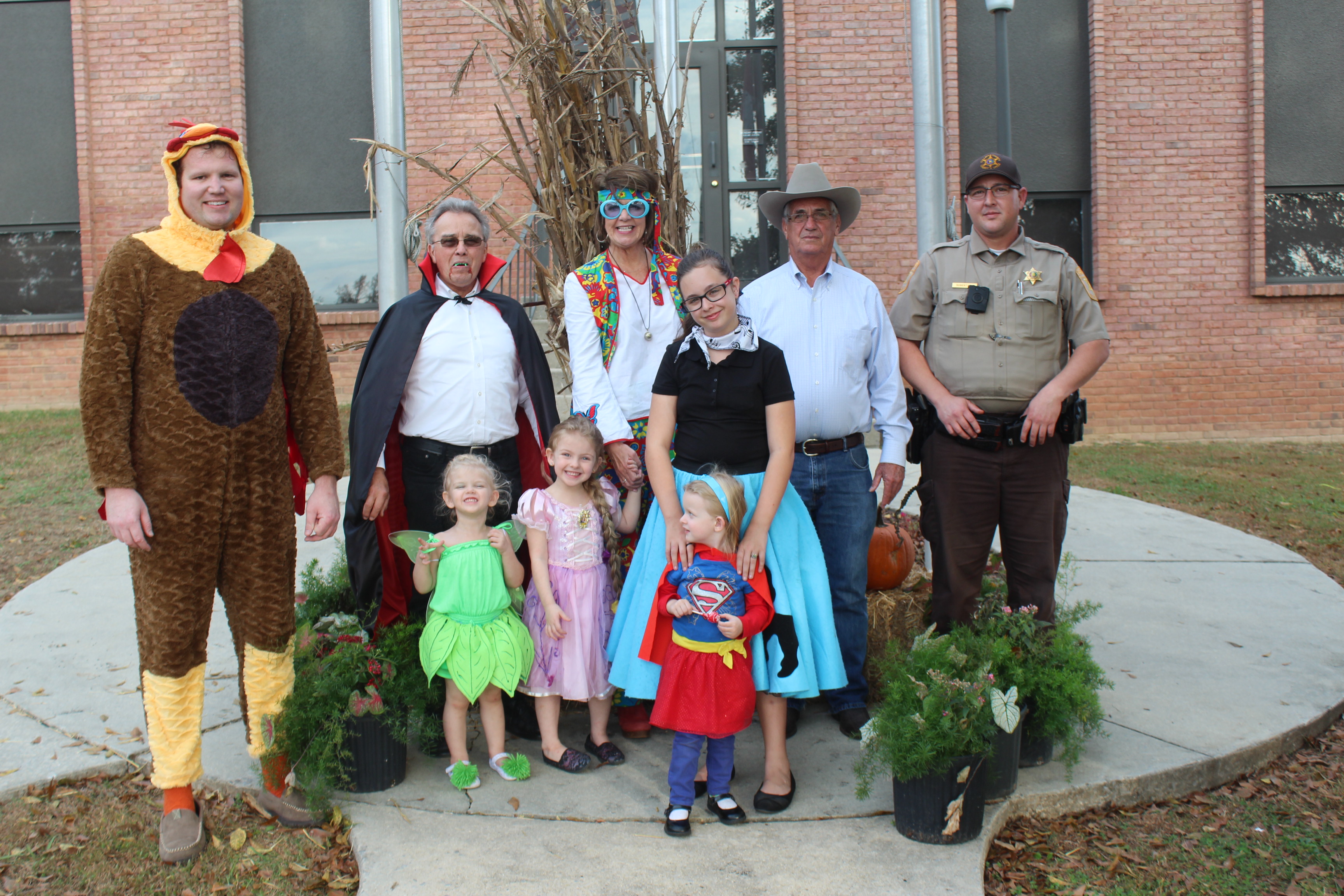 Left to right, back row: Rep. Corey “Turkey” Harbison, “Count” Mayor Jerry Bartlett, Councilwoman Susan “Hippie Chick” Eller, Councilman Maxie “Cowboy” Jones and Deputy Eric Robertson; left to right, front row: Harper Salisbury, Anna Salisbury, Destiny Siegel and Lilliana Siegel take part in Good Hope’s Halloween costume contest on Oct. 31, 2018. (Christy Perry for The Cullman Tribune)