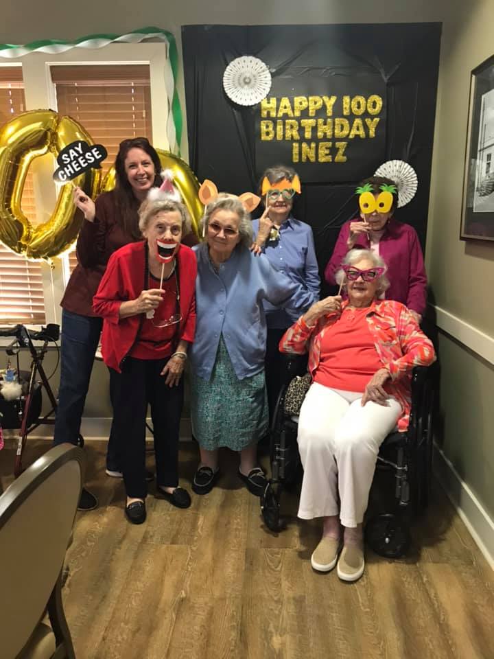 Cullman Tribune reporter Christy Perry poses with a few of the senior ladies she has profiled over the last several months. The group was together at Westminster Assisted Living of Cullman, celebrating Mrs. Inez Ruehl's 100th birthday.