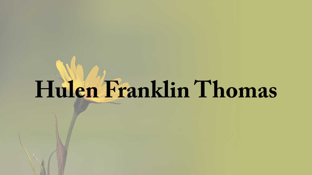 Funeral Service for Hulen Franklin Thomas, age 85, of Baileyton, will be at noon on Thursday, April 4, 2019 at Cullman Heritage Funeral Home with Dr. Tim Lipsey officiating; interment in Welcome Baptist Cemetery.