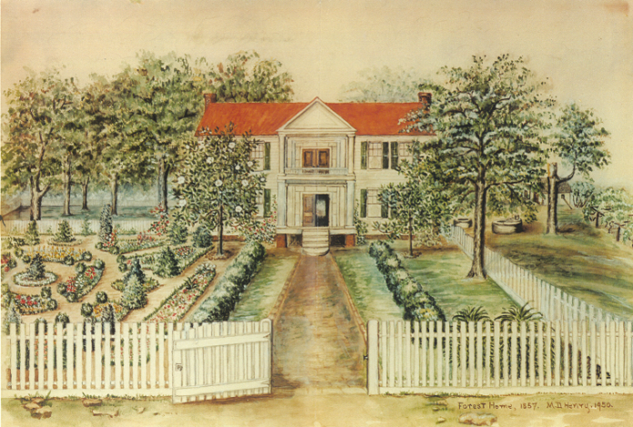 “The Lost Garden of Forest Home” first crossed my radar about 25 years ago. My source was a gentleman in Birmingham, George Robert Stritikus, who was a prominent member of the Southern Garden History Society. Mr. Stritikus, the Jefferson County agent for the Alabama Cooperative Extension System, had been instrumental in the restoration of several period gardens in Alabama. We were in his downtown office shooting the breeze about Southernness and gardens when, just like some character in an “Indiana Jones” movie, he walked over to a cabinet, unlocked a drawer and pulled out a watercolor “imagining” of Ann Fennel Davis’ garden, circa 1858. The illustration had been painted by M.D. Henry in 1950. Later, George Stritikus graciously gifted me with a copy of this lovely botanical art, which I shared with Morgan County archivist, John Allison, yesterday.
