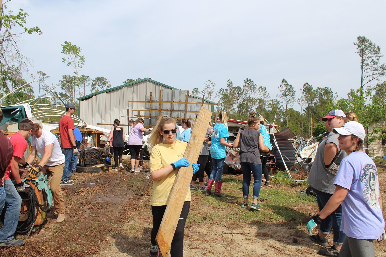 As citizens of Cullman County can attest, much like the tornadoes of April 27, 2011, there is still much work to be done in Lee County.  Long after the news moves on to do other stories, Red Cross transfers to another disaster, and volunteers have returned home, devastation still remains.  At 4:30 a.m. on the morning of April 17, 2019 students from all communities of Cullman boarded a bus and headed for Lee County with one purpose. One team with one goal: to serve those in need.  Typically, with this age group, students tend to want to only work with those whom they are associated. Not on this day! Without any prompting, all students and adults got off the bus and went to work as one team.  Teens from both city and county worked diligently to provide the most benefit to the families who were affected. For the first family, it was cleaning/hauling large amounts of remaining debris and picking up what was left of their homes.