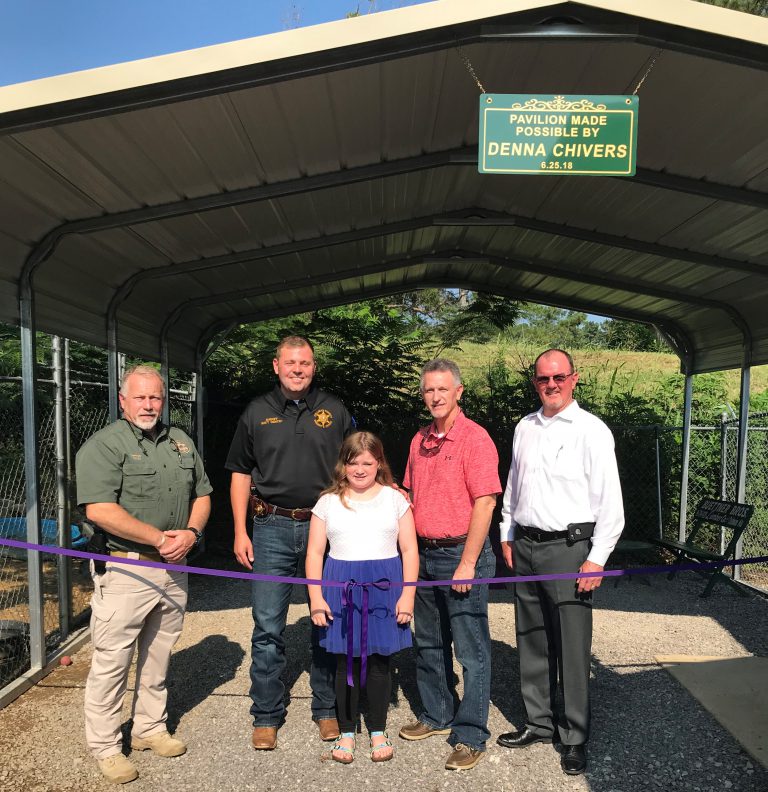 Her generosity was celebrated last summer with a special ribbon cutting where she was joined by the Cullman County commissioners, Sheriff Matt Gentry and the shelter staff. Captain Tim McKoy had a special sign made that hangs from the pavilion in honor of Chivers. The pavilion offers a shady area for the dogs to sit under during their daily outside time. The area is also perfect for visitors who want to interact with the dogs as they find the perfect one to adopt.