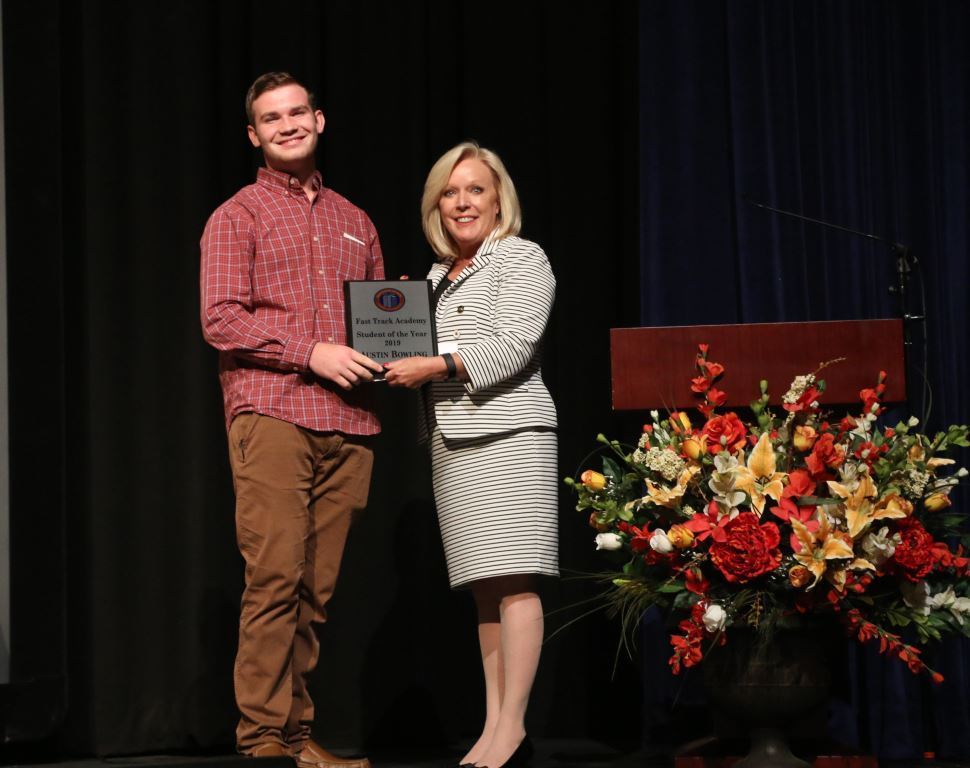 Fast Track Student President Austin Bowling was named the Fast Track Academy Student of the Year. He also addressed his fellow graduates, congratulating them and thanking multiple individuals who have helped the group over the past two
