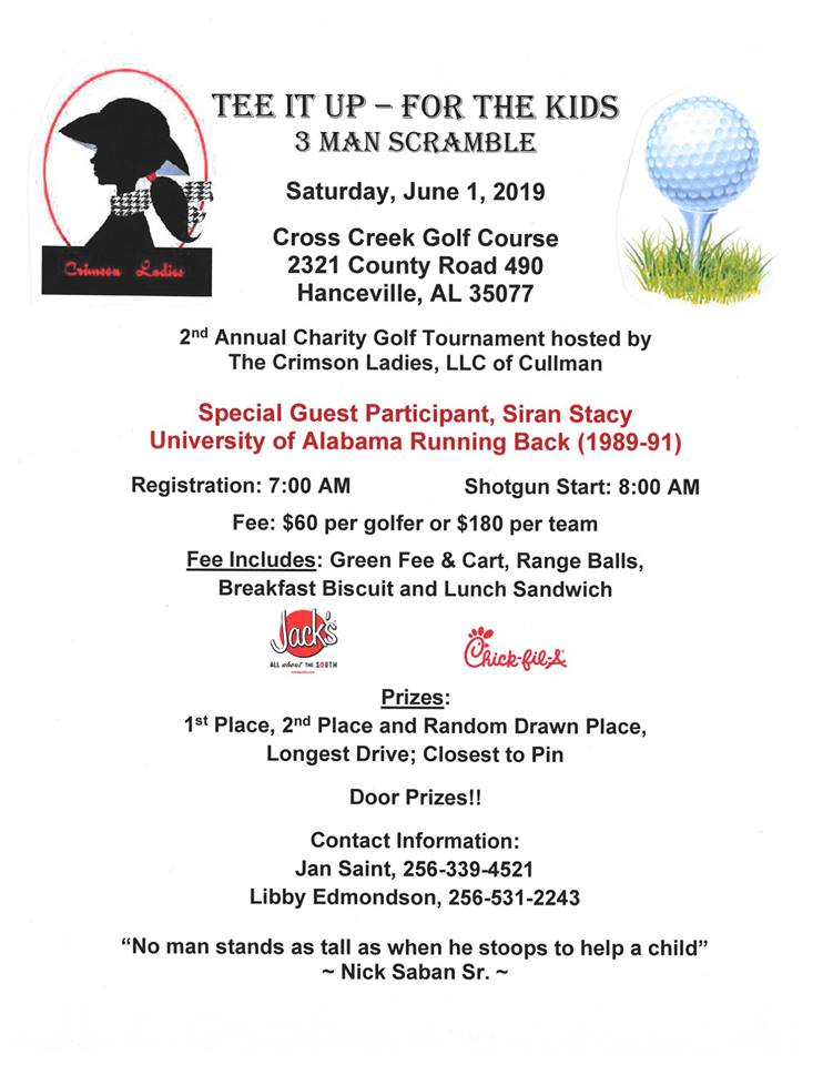 CULLMAN, Ala. – After a successful inaugural tournament last year, The Crimson Ladies of Cullman are gearing up for their second annual charity golf tournament. This year’s tournament will be held at Cross Creek Golf Course in Hanceville and registration opens up at 7 a.m. before a shotgun start at 8. The cost for an individual golfer is $60, the team rate is $180, and proceeds will be going to the Nick’s Kids Foundation.