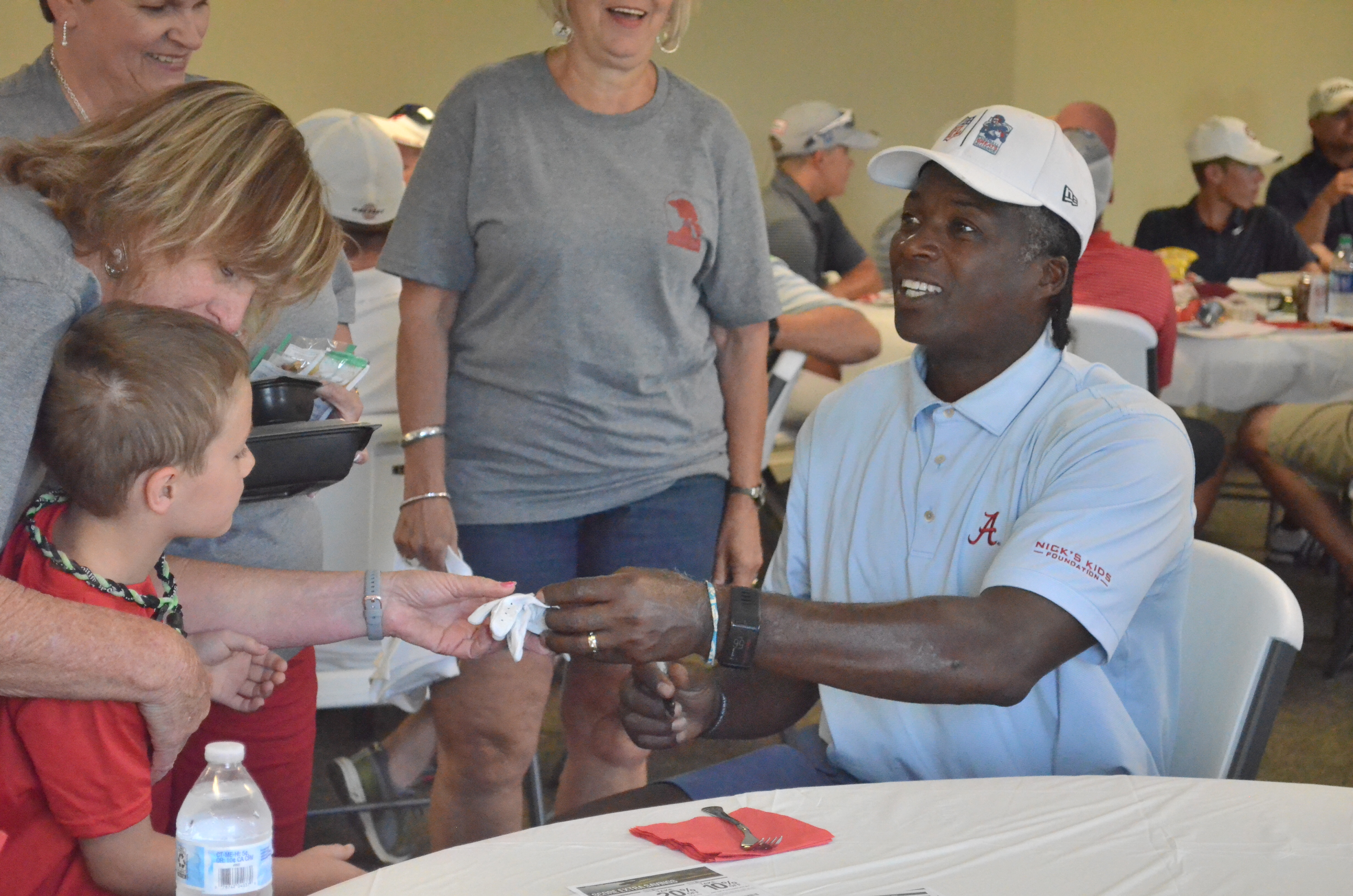 CULLMAN, Ala. – Thirty-nine golfers made their way to Cross Creek Golf Course Saturday morning for the second annual Crimson Ladies of Cullman Charity Golf Tournament and one of them was former Crimson Tide running back Siran Stacy. Stacy, along with the other players in the field, helped make this year’s event another success. This year’s tournament featured 41 door prizes and an increase in hole sponsors, and the Crimson Ladies received several generous donations from tournament participants as well. Proceeds from the event have gone to both Curt’s Closet here in Cullman and the Nick’s Kids Foundation, the official charity of Nick and Terry Saban, in the past, and the Crimson Ladies plan to continue supporting those organizations.