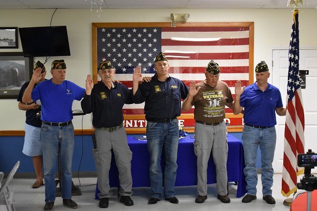 Installation of new and returning post officers (L-R): Bob Stevens – 3rd year trustee, Will Harris – commander, Mike Elston – sr. vice commander, Robert Turner – jr. vice commander, Joseph Charles – chaplain. Not pictured: Brian Monk – quartermaster, Warren Reppond – 2nd year yrustee, Candace Reppond – 1st year trustee (W.C. Man for The Cullman Tribune)