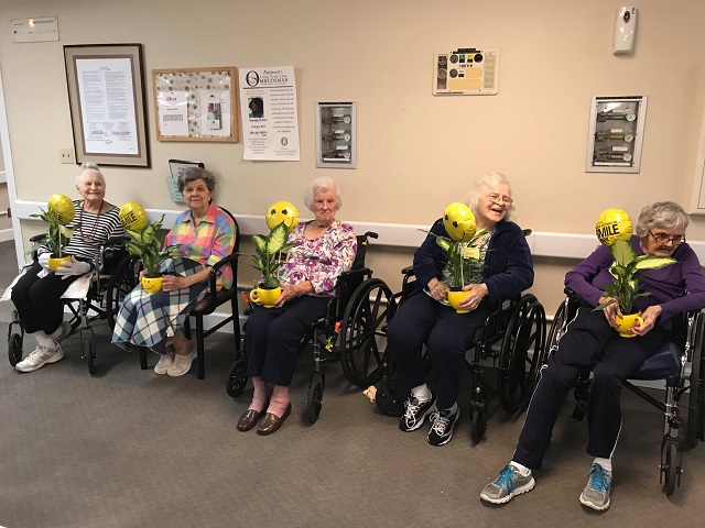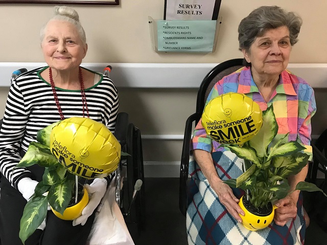 CULLMAN, Ala. – The residents and staff of The Folsom Center were all smiles Wednesday after receiving surprise gifts from Cullman Florist. For the second year, Cullman Florist participated in Teleflora’s Make Someone Smile Week. Florists Stephanie Cook and Carla Fussell, along with a group of young volunteers, personally delivered the arrangements to each resident.