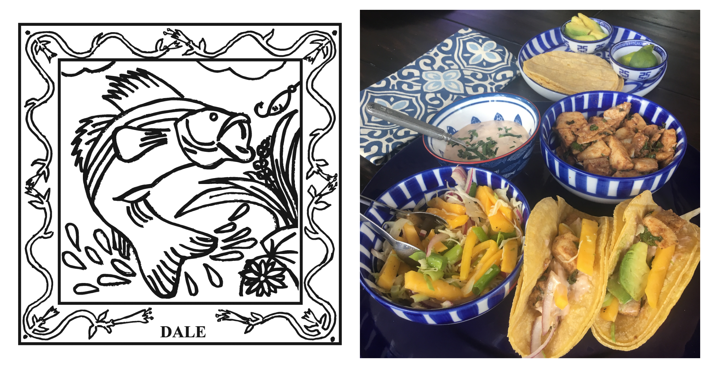 My thanks to Laurie Johnson for creating and sharing her recipe for Dale County Big Mouth Bass Fish Tacos. These are flavorful, festive and fun for a lakeside picnic.