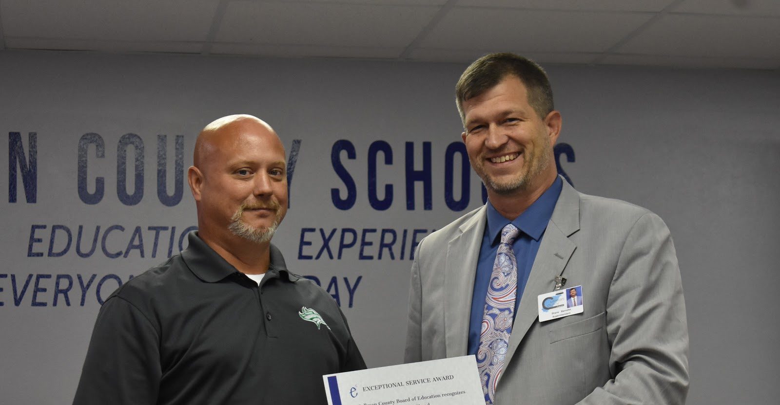 CULLMAN, Ala. – At its meeting Tuesday evening, the Cullman County Board of Education (CCBOE) issued its first Exceptional Service Awards of the 2019-20 school year to Holly Pond bus driver Matt Wood and Fairview businesses The Hutch and Fairview Quick Stop, represented at the meeting by owners Dr. Josiah and Shannon Daily.