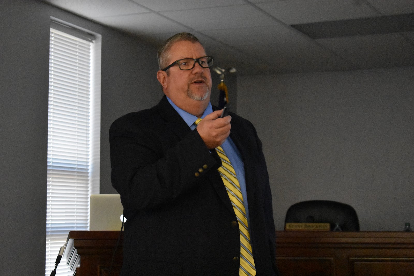 CCBOE Chief School Financial Officer Ed Roberson explains the 2020 budget before Monday’s vote. (W.C. Mann for The Cullman Tribune)