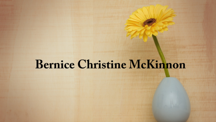 Funeral services for Mrs. Bernice Christine McKinnon will be at noon at Shelton Grove Baptist Church Thursday, Sept. 12. Visitation will be at the church from 11 a.m.-noon. Ernest McKinnon will be officiating. Burial will follow at the Shelton Grove Baptist Cemetery.