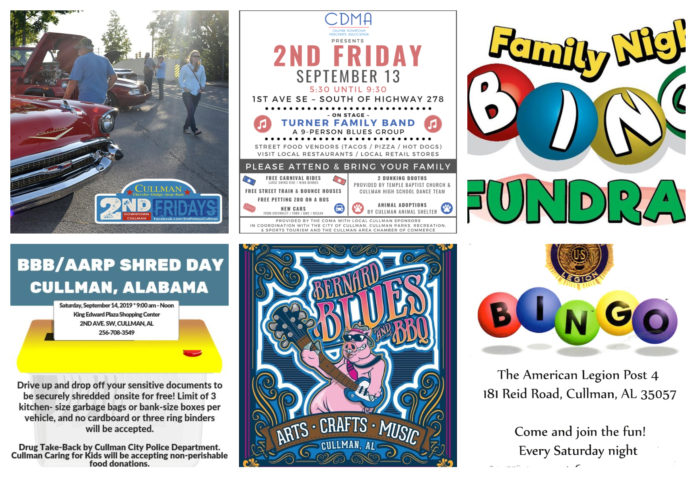 Cullman Shred Day is Saturday, Sept. 14 from 9 a.m.-noon at the King Edward Plaza Shopping Center. The address is 2nd Ave. SW, Cullman, AL.