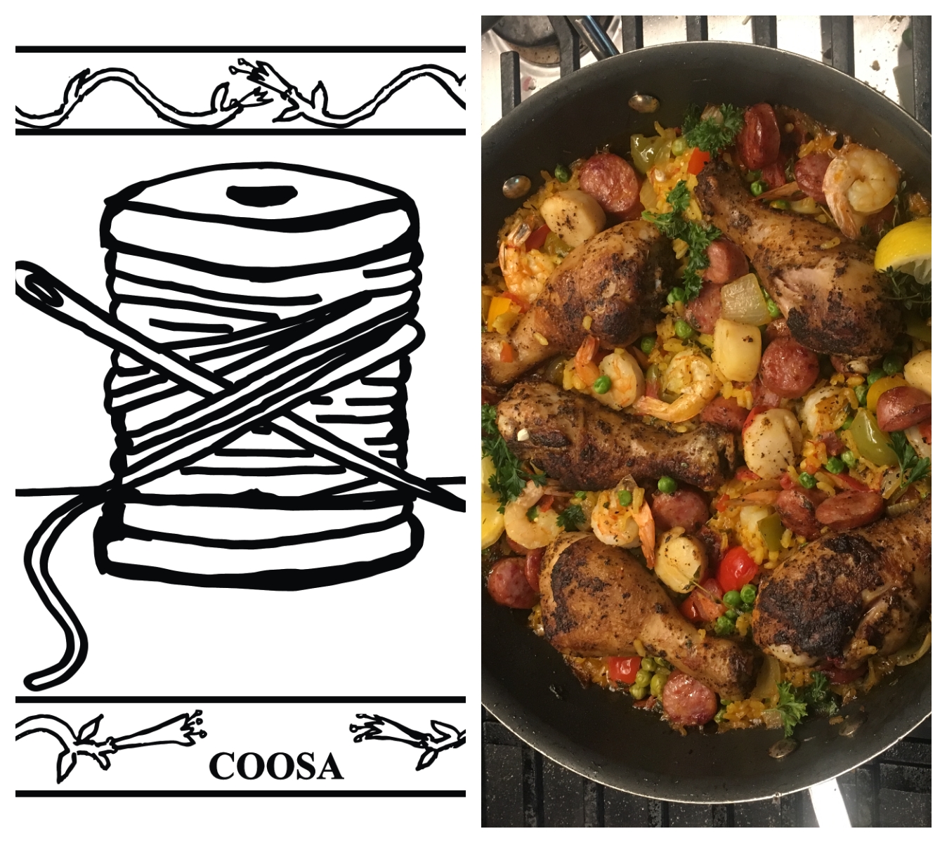 Coosa County Alabama Paella with Chicken, Seafood, Sausage and Garden Vegetables (~ 6 servings)