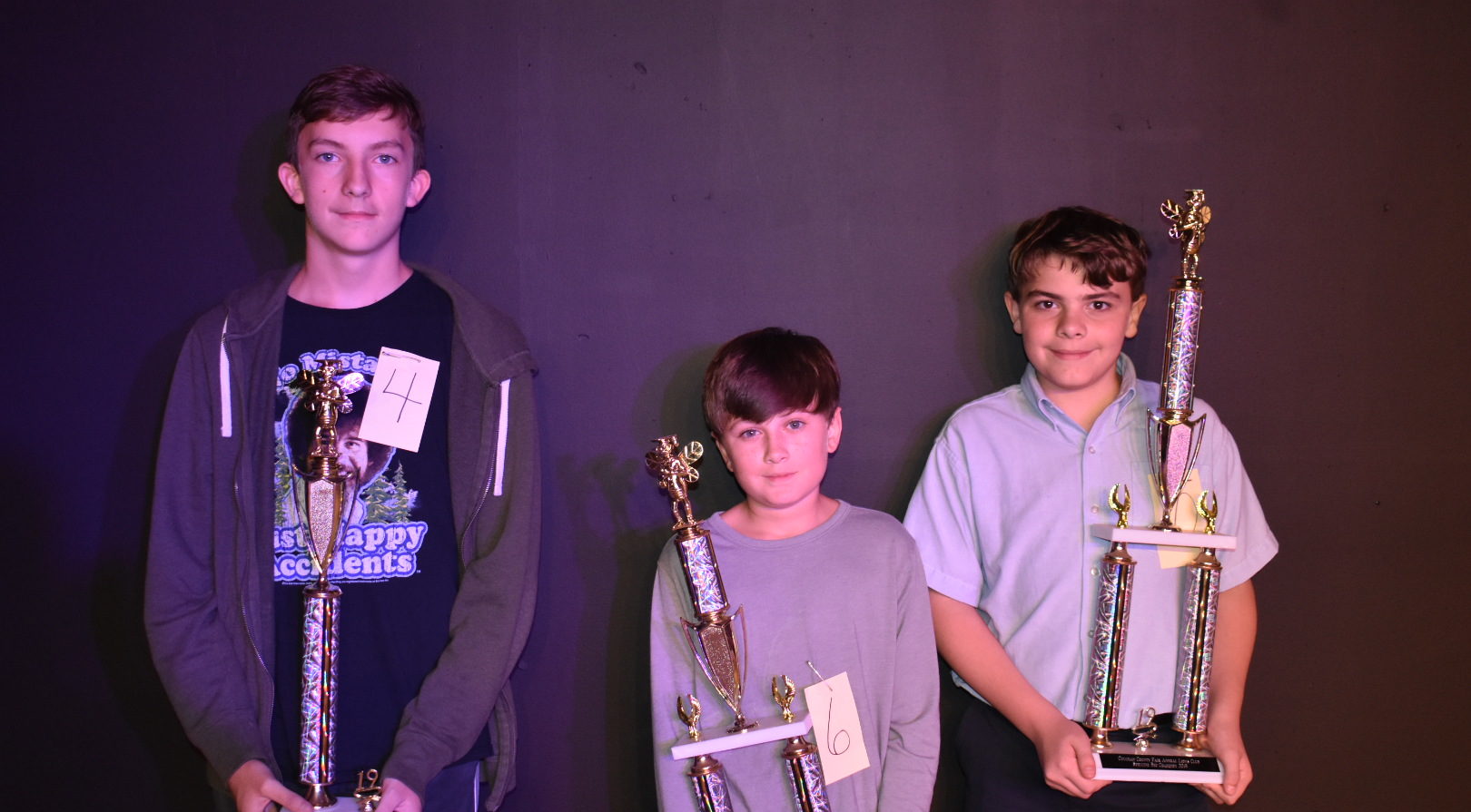 St. Bernard seventh grader Carter Daily took the Cullman County Fair Spelling Bee title for the second year Wednesday evening. A bee veteran, Daily reached the third round of this year’s 92nd Scripps National Spelling Bee in May.  Pictured from left to right are eighth grader Clayton Gary, the second runner-up; seventh grader Jordan Graham, first runner-up; and Daily.