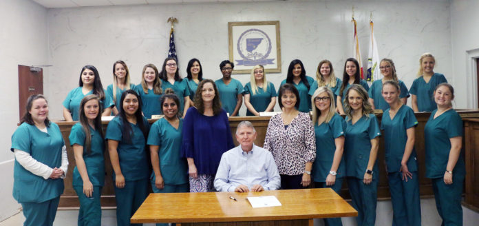Students in the Medical Assistant program recently visited Hanceville City Hall, where Mayor Pro Tem Jim Sawyer presented a proclamation from Mayor Kenneth Nail, recognizing Medical Assistants Recognition Week in Hanceville