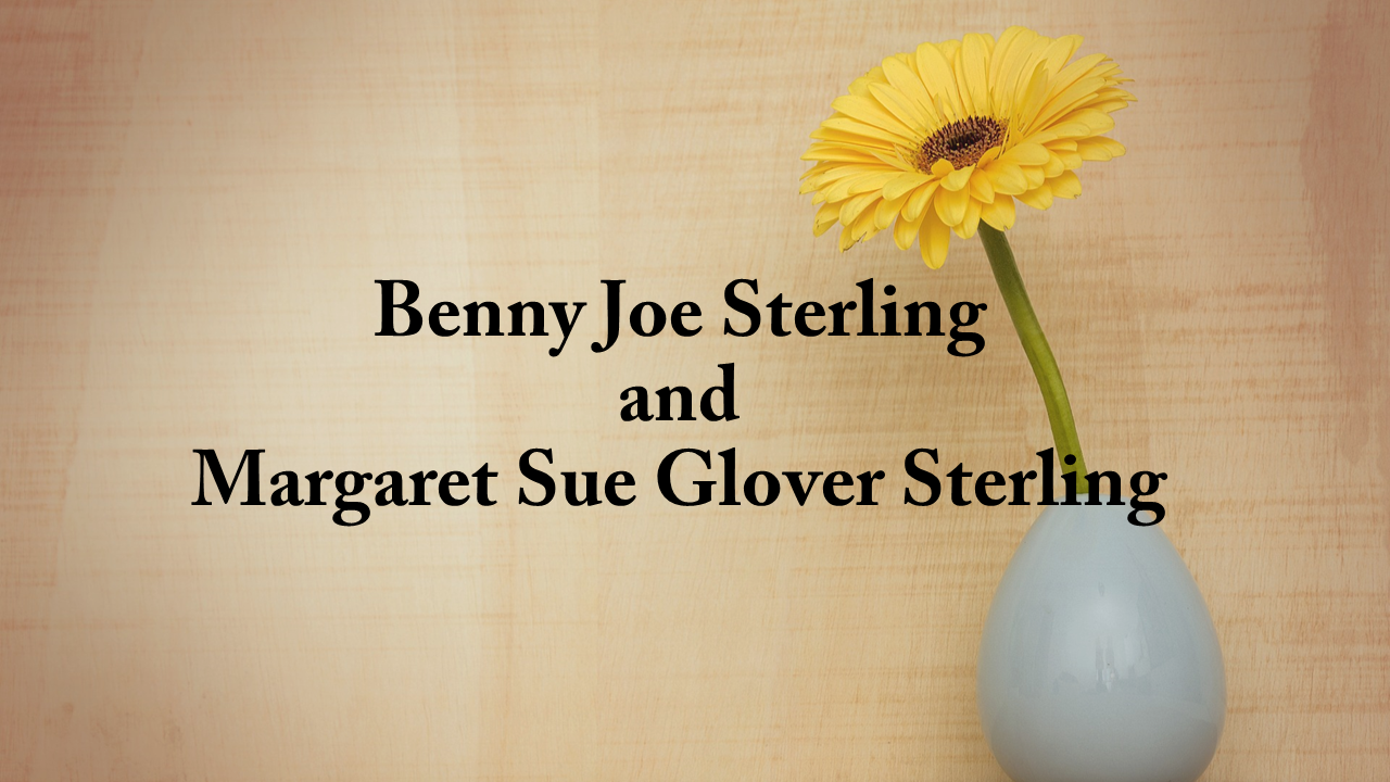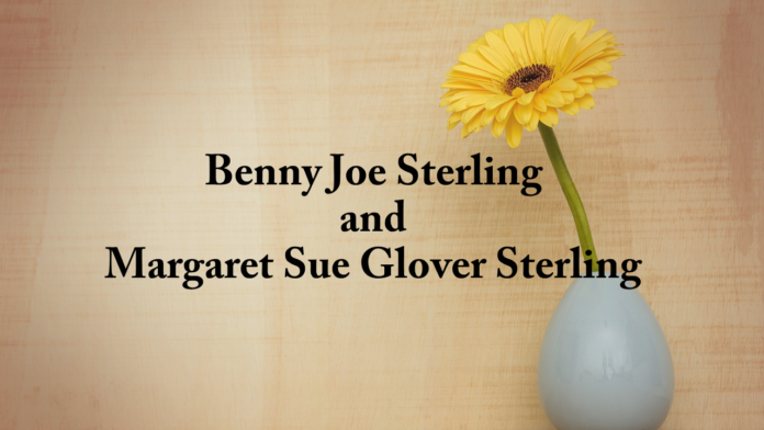 Funeral services for Mr. Benny Joe Sterling, 73, and Margaret Sue Glover Sterling, 73, of the Sardis Community will be held at 2 p.m. Wednesday, Oct. 23 at Sardis Baptist #2. Burial will follow in the adjoining cemetery, with Rev. Mackey Watts and Rev. Brian Weems officiating. They will lie-in-state at the church from 1-2 p.m.