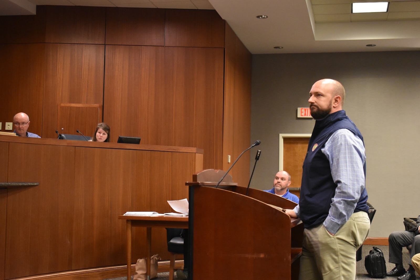 Construction Manager John Gwen, representing Chicken Salad Chick, answers questions from the City of Cullman Planning Commission Monday evening. (W.C. Mann for The Cullman Tribune)