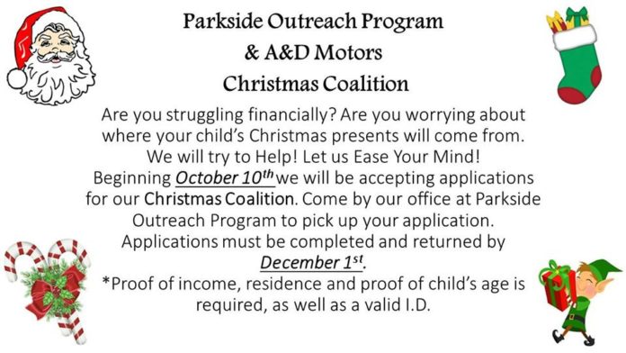 Families in need can apply now through Dec. 1 at the Parkside Outreach Program office for consideration. Debbie Humphries with Parkside Outreach Program said that the number of families the program will be able to help has not been determined.