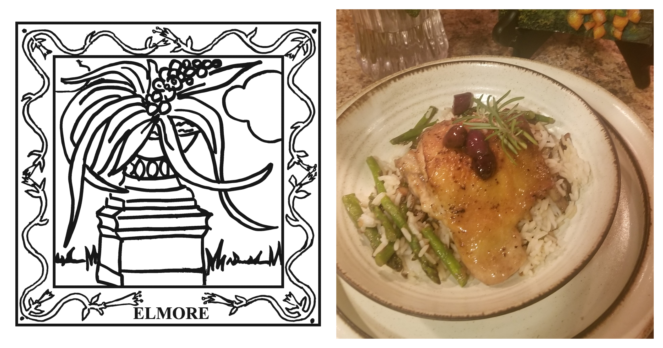 Elmore County, Alabama may seem an unlikely spot to have a little haven of Greek-influenced landscaping and structures, but not an unlikely place to create wonderful Greek-inspired recipes. This simple chicken dish combines wine, olives and herbs and is paired with flavorful jasmine rice and asparagus for a comforting Greek feast, right here in Alabama.