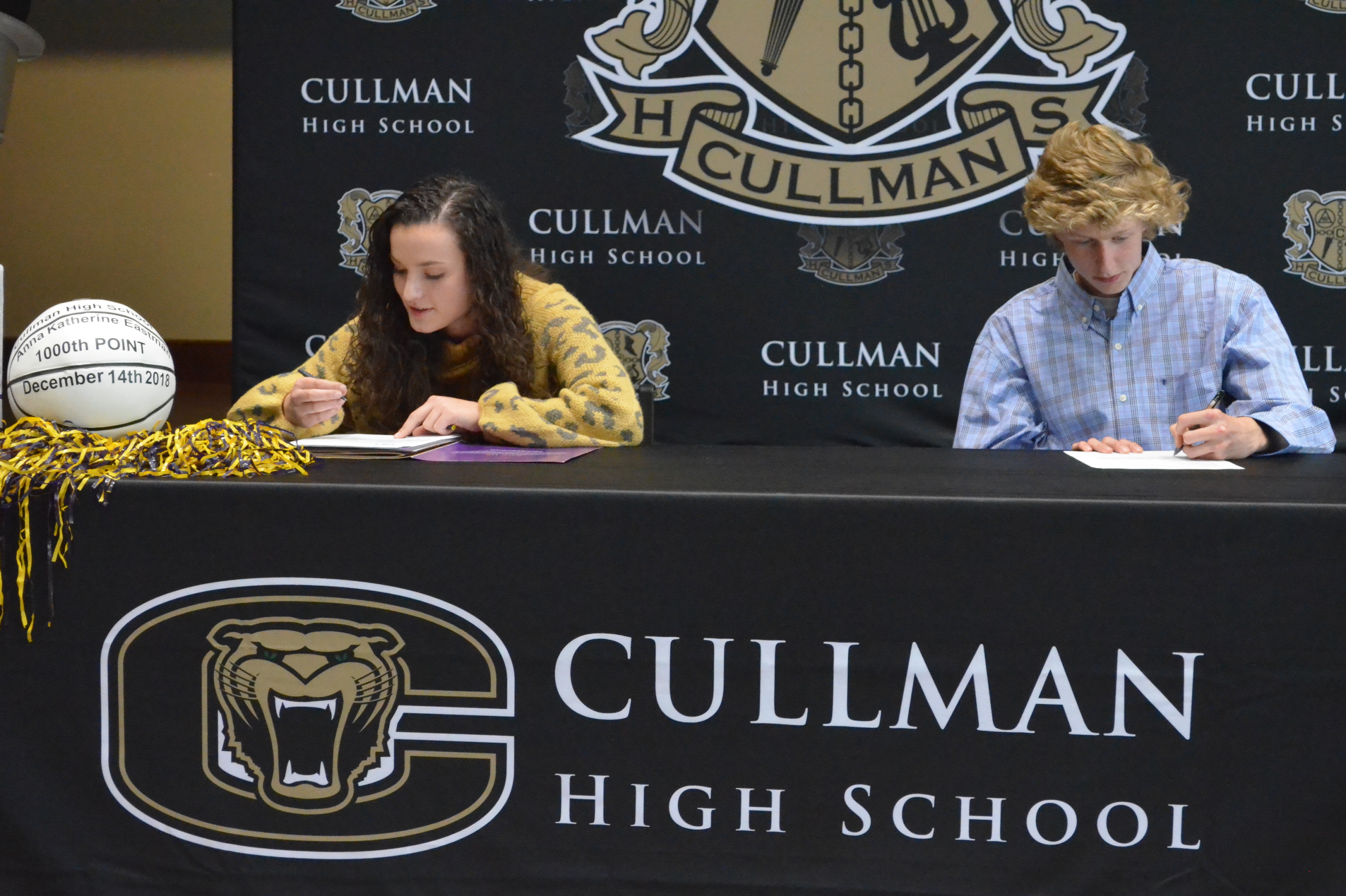 CULLMAN, Ala. – Two highly accomplished Bearcat athletes took another big step toward their collegiate careers on Wednesday. Teammates, friends, family and coaches gathered in Cullman High School’s Tillman Hall to see basketball and cross-country standouts AK Eastman and Will Thompson sign their national letters of intent to continue their athletic careers at the University of Montevallo and the University of Alabama at Huntsville respectively.