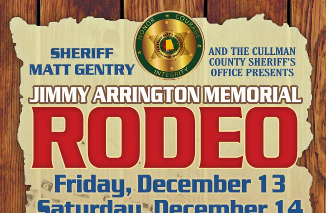 CULLMAN, Ala. – Cullman County Sheriff Matt Gentry has announced the 21st annual Cullman County Sheriff’s Office (CCSO) Jimmy Arrington Memorial Rodeo, coming Dec. 13-14, 2019 to the Cullman Agricultural Trade Center, 17645 U.S. Hwy. 31 N, Cullman. The event will open at 7:30 each evening.