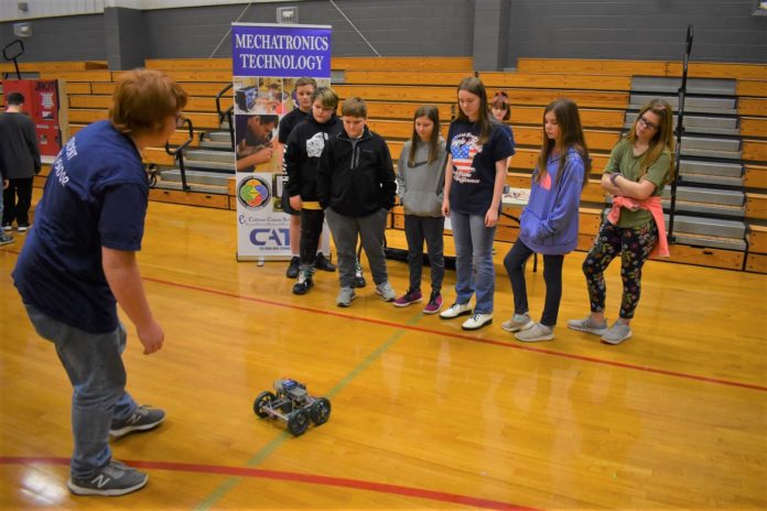 VINEMONT, Ala. – On Tuesday, students at West Point and Vinemont Middle Schools got visits from the Cullman Area Technology Academy (CATA) Career Caravan, during which student ambassadors representing each of the career center’s 14 programs talked about their departments, displayed tools of their trades and even let the younger students get hands-on with some simple projects. The caravan program visits all middle schools through the course of the year, introducing middle schoolers to CATA’s course offerings and explaining the advantages of career technical education in the current job market.