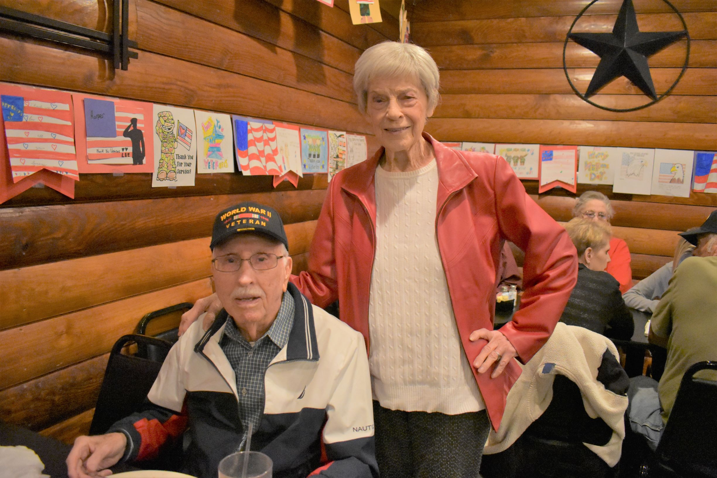 The entire restaurant was decked out in posters and drawings honoring veterans and service members, which Speakman said were all from local elementary schools.