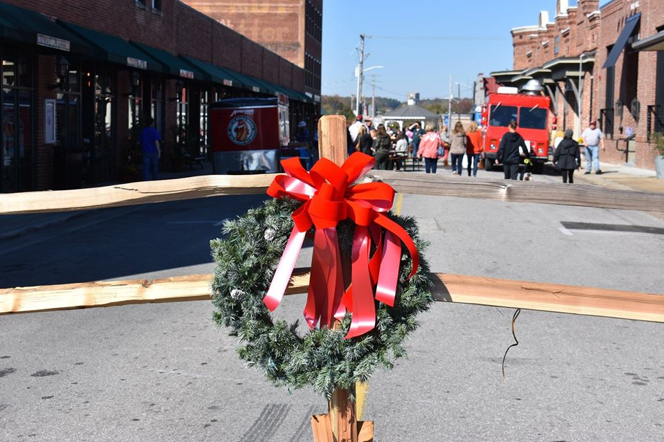 An evergreen wreath, among the most common Advent decorations, hangs in the Warehouse District during Christmas in Cullman. (W.C. Mann for The Cullman Tribune)