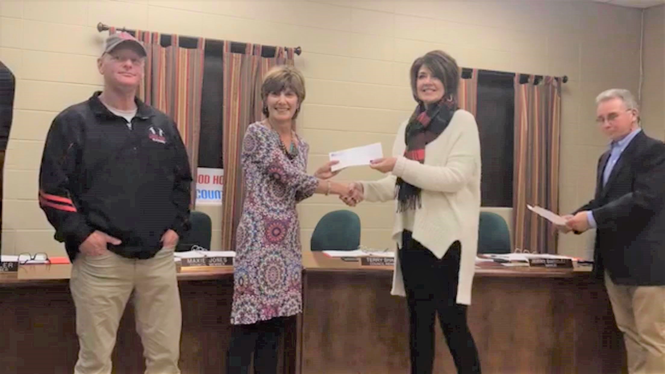Good Hope Middle School’s Pam Yates, second from left, accepts a check for $1,300 from the Good Hope City Council Monday night. Also pictured, left to right, are Councilman Taft Dillashaw, Councilwoman Susan Eller and Mayor Jerry Bartlett.(Christy Perry for The Cullman Tribune)
