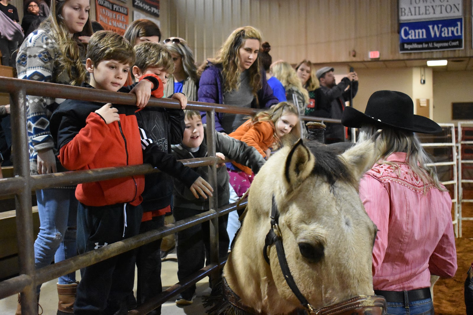 CULLMAN, Ala. – The Cullman County Sheriff’s Office (CCSO) kicked off its annual Jimmy Arrington Memorial Rodeo with a Thursday morning mini rodeo for the Cullman area’s special needs community. Approximately 1,400 students and other special needs guests came from across the county and city school systems, as well as other agencies, to see pro rodeo cowboys and cowgirls put on demonstrations of steer wrestling, roping, bull riding and barrel racing. Afterward, they took to the Cullman County Agricultural Trade Center’s arena floor to try their hands at roping and stick horse racing, and to take hay rides outside.