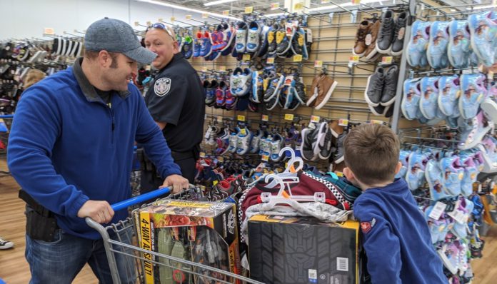 Sgt. Adam Clark, who oversees the program, told The Tribune, “This is our sixth year for Shop with a Cop and, basically, we raise money throughout the year. Our biggest thing is a fundraiser that’s done by the Jack Aces Motorcycle Club. We use the money, not only for Shop with a Cop, but we have community cookouts-just stuff we do for the community. But our big event is, of course, Shop with a Cop, which this year, we’re taking 14 or 15 kids today, but we’re providing for 34 individuals and families this year, for Christmas for them.”
