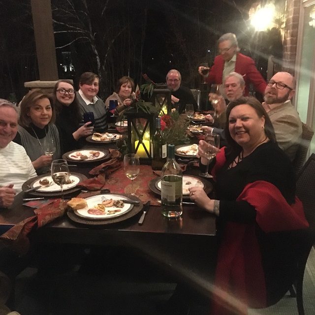 The cast and friends of Cullman’s original musical/comedy “The One-Liner American Diner” (on the left: Rodney Basenburg, Concetta Lovoy Kreps, Hannah Crider and Justin Weygand) enjoyed a rawtha posh but loff-filled dinner with Brits (on the right: Kate and Duncan Smith, Nick and Jackie Webster, far left) so the performers could polish their British accents. After plenty of “rain in Spain falls mainly on the plain” and “Downton Abbey” laughter it was “pip pip and cheerio” as all left for an evening of holiday cabaret at Birming-HAM’s (not Birming-um’s) Virginia Samford Theatre. “The One-Liner American Diner” previews in Cullman at the Empty Bowls fundraiser supporting Cullman Caring for Kids at First United Methodist Church, Monday, Feb. 17 from 4-7 p.m. (Ben South, standing)