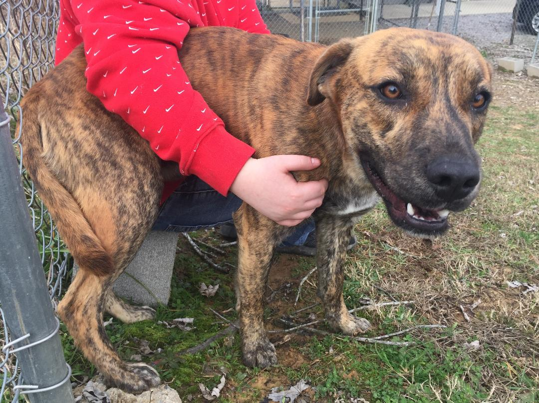 Asher is a 1.5-year-old Plott Hound mix with the dramatic striped brindle coat typical of the breed. He’s an active-but-not hyper medium-energy pet who loves human interaction. He is well-tempered, developing good leash skills and respecting his people’s personal space.