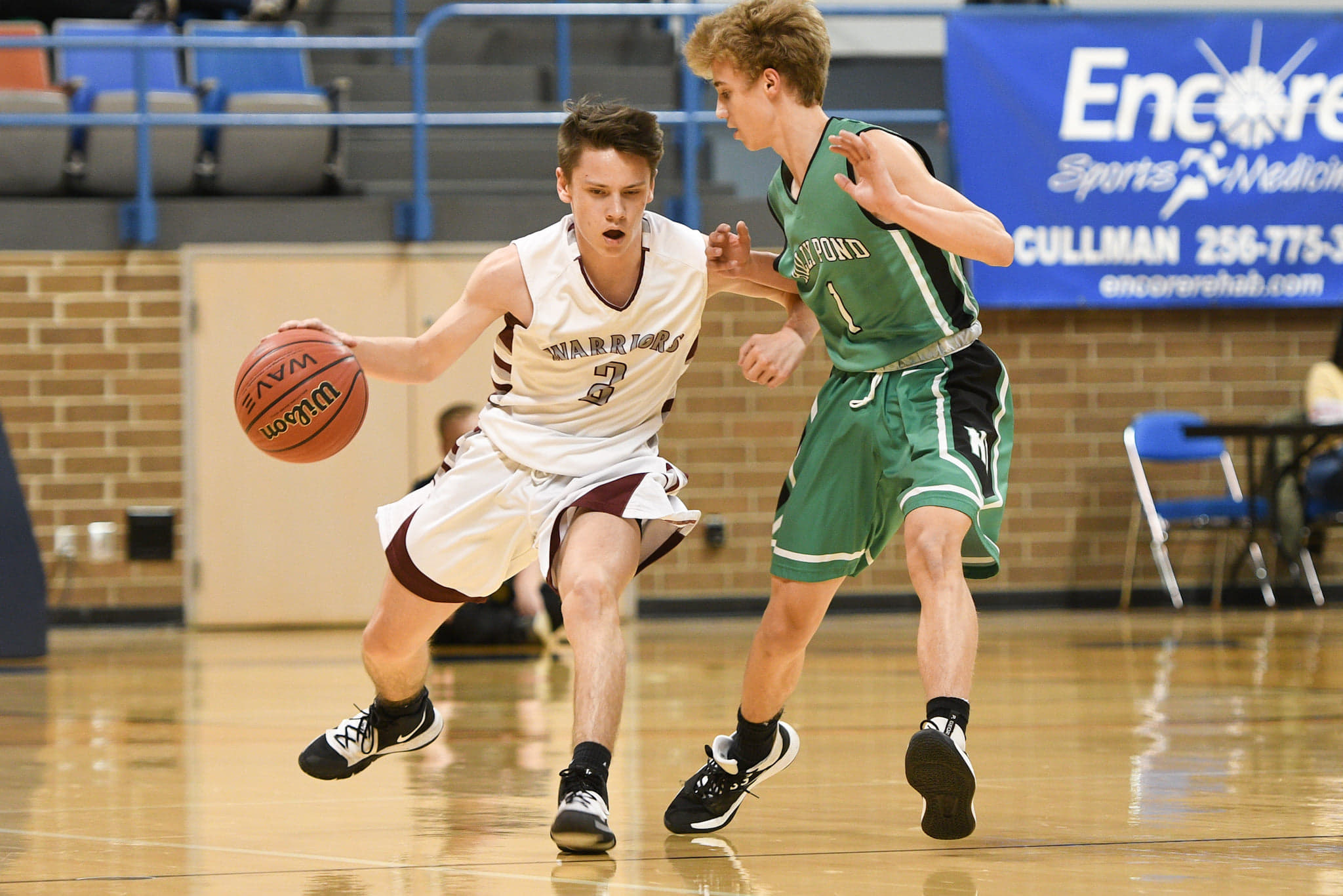 West Point’s Ethan Gammon (2) scored 10 points in the Warriors’ 51-23 win over Holly Pond in the Tuesday’s semifinals. (Martha Needham for The Cullman Tribune)