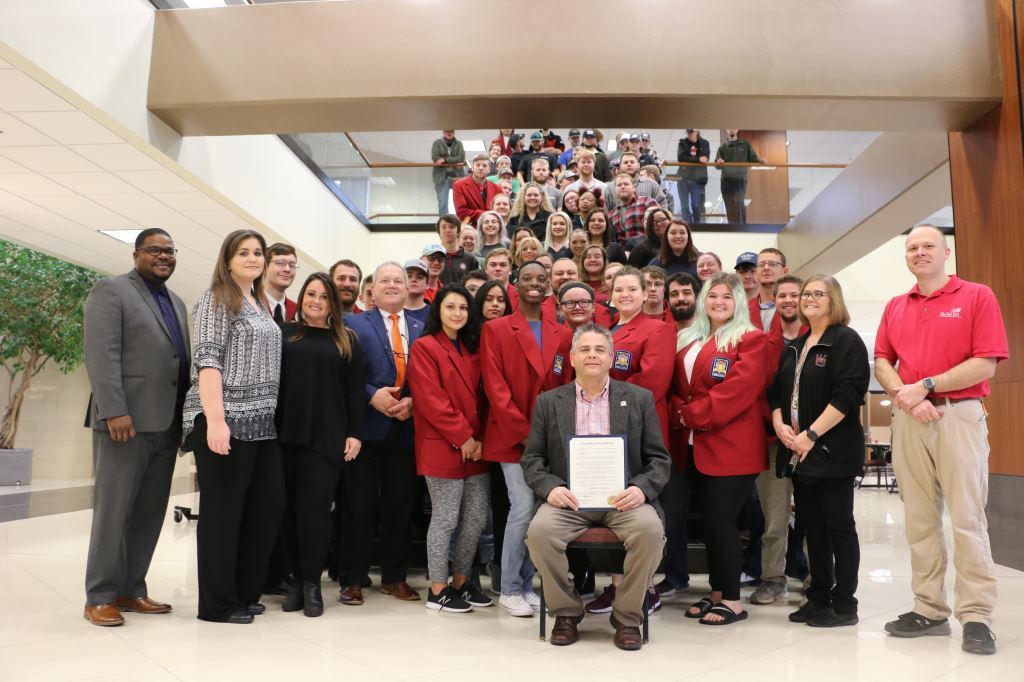 HANCEVILLE, Ala. – Wallace State’s Applied Technologies students, faculty and Hanceville Mayor Kenneth Nail joined others across the nation this week to celebrate SkillsUSA Week. Nail signed a proclamation this week at Wallace State, recognizing the college’s participation and leadership within the SkillsUSA family.