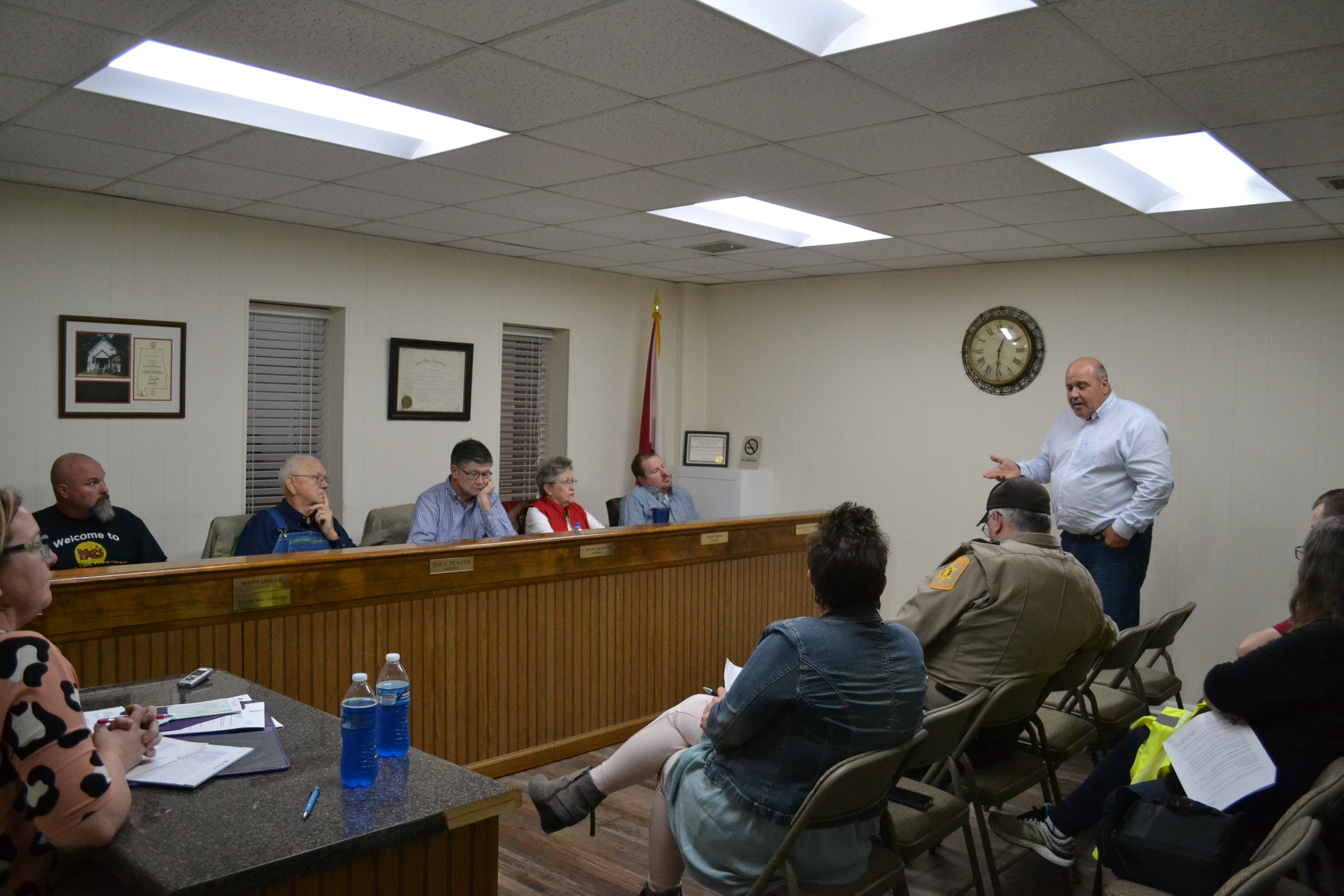Cullman County Commissioner Garry Marchman (standing) visited the Garden City Town Council at its February meeting Monday evening. (Maggie Darnell for The Cullman Tribune)