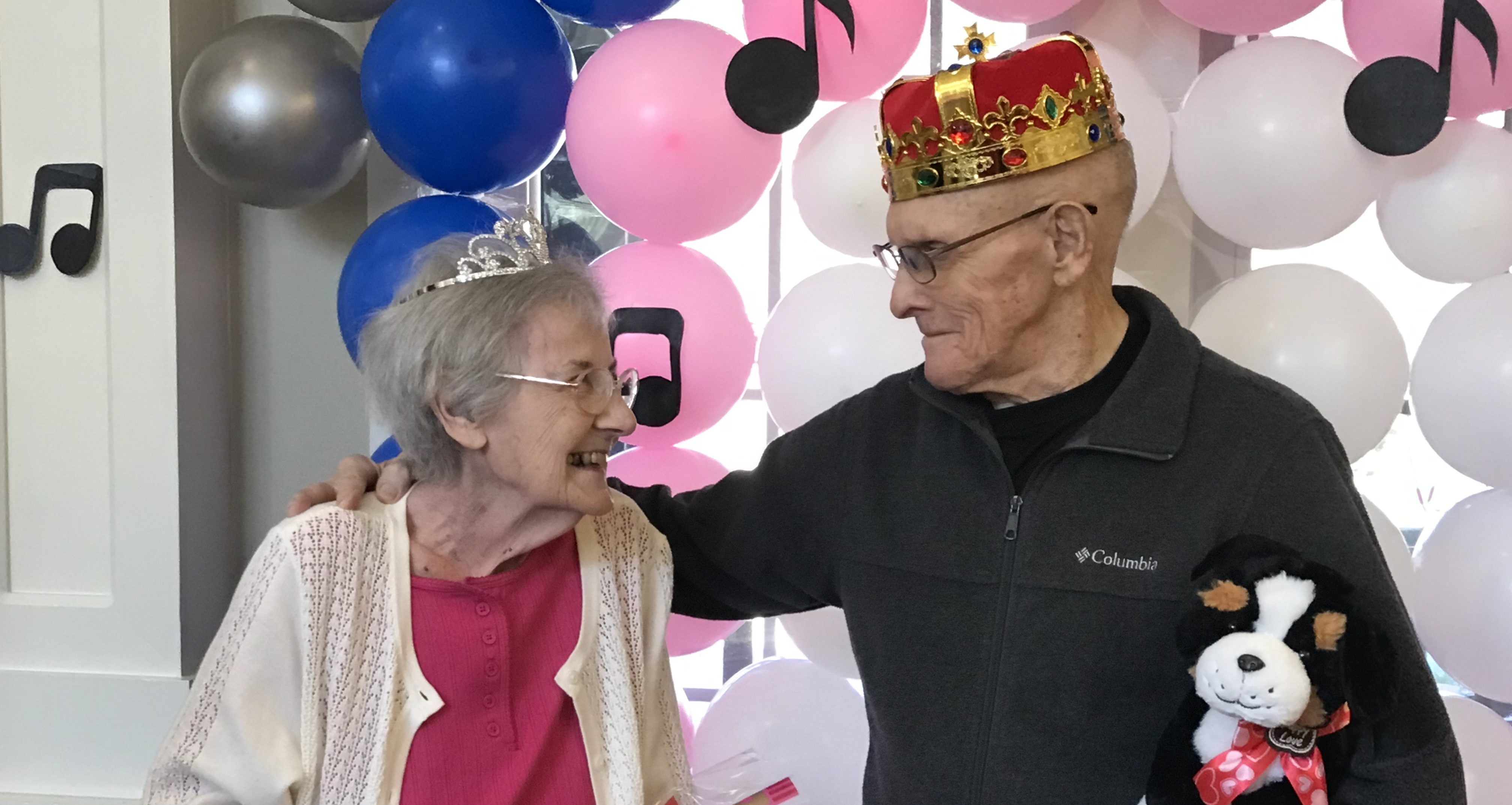 This year’s Valentine’s Day King is Louis Price and his Queen is Martha Ashbaugh. Carol Henshaw was crowned Valentine’s Day Princess. The trio posed for pictures in front of the giant balloon jukebox while celebrating with their friends and staff.