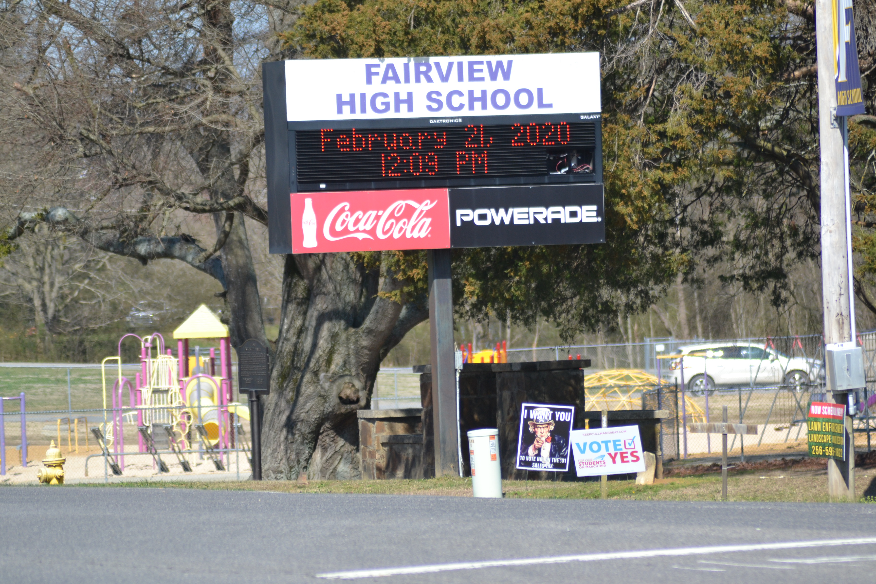 Signs advocating for the tax and paid for by the PAC Advocates for Excellence in Education are in compliance. They read, “VOTE YES FOR OUR STUDENTS ON MARCH 3RD.”