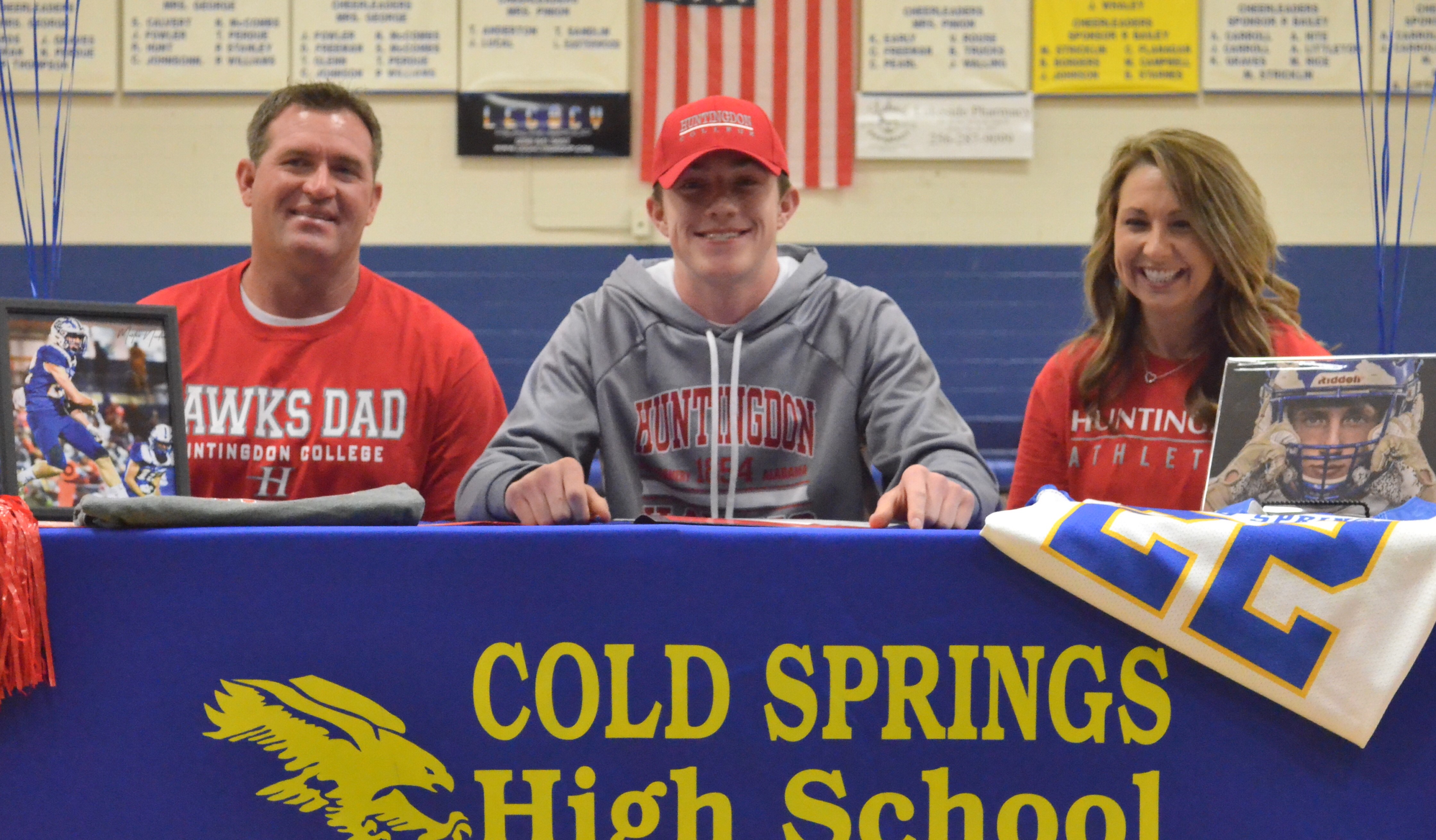 BREMEN, Ala. – Friends, families, teammates and coaches made their way to Jesse George Gymnasium at Cold Springs High School Wednesday morning to celebrate the next stage one Eagle’s athletic and academic career. Lawson Burgess stood out on both the offensive and defensive sides of the football for Cold Springs last season and his performance earned him an opportunity to play at the next level for the Huntingdon Hawks and Coach Mike Turk.
