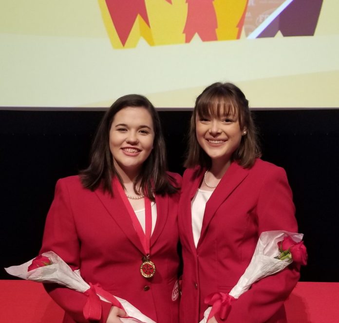 During this FCCLA State Leadership Conference, Madeline Mitchell from Cold Springs High School and Kate Rains from Cullman High School ran for an FCCLA State Officer position.  Thirteen total students from all over the state of Alabama ran for the six officer positions.  The students had to complete an interview and impromptu speech for judges, and then answer a question on stage and present a speech on stage for their peers to judge.  Mitchell and Rains were voted in by their peers to be on the 2020-2021 FCCLA Executive Council.  Mitchell is the new vice president of Students Taking Action with Recognition (STAR) Events and Rains is the new vice president of Programs.