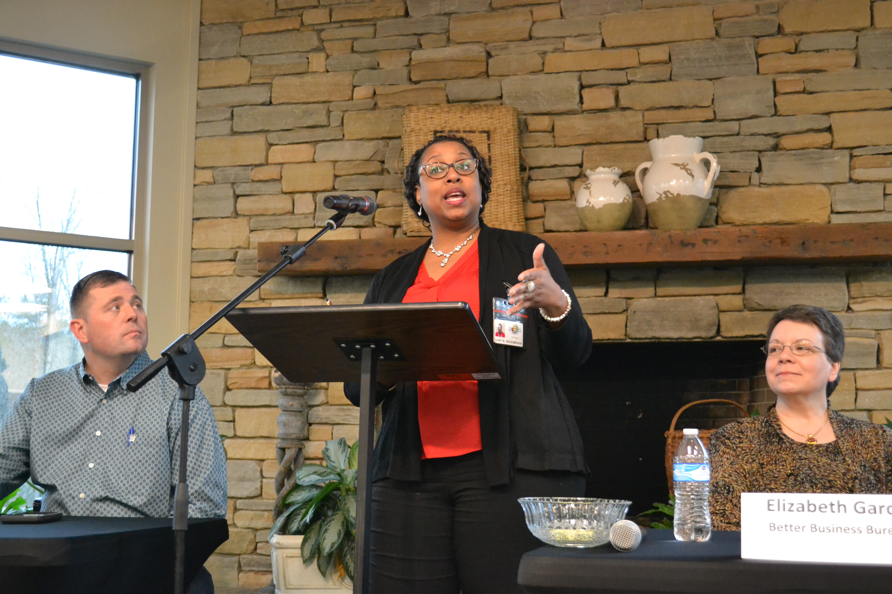 The Better Business Bureau’s Elizabeth Garcia targeted identity theft at the fraud prevention seminar Friday morning. (Maggie Darnell for The Cullman Tribune)
