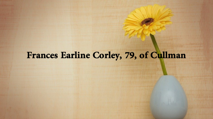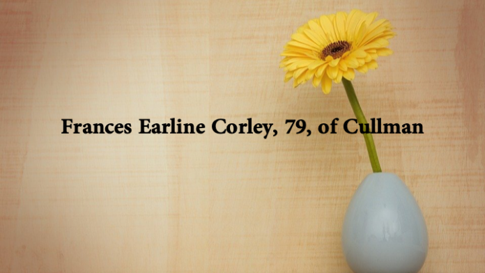 A private graveside service for Frances Earline Corley, 79, of Cullman will be held at 11 a.m., Thursday, March 26, 2020 at Blair Congregational Methodist Cemetery, Rev. Tim Holder officiating. Cullman Funeral Home is in charge of the arrangements. Earline passed away Monday, March 23rd at Woodland Health Care. She was born August 12, 1940 to Earnest Richard & Minnie Mae Rooker Posey. She was a member of Blair Congregational Methodist Church and was known as a prayer warrior. She loved to read and enjoyed keeping in touch with everyone. She was preceded in death by her parents; her son, Shannon Corley; a sister, Mava Whitaker; two brothers, Robert E. Posey and James Posey. Survivors include her former husband and her friend, Windol Corley; sisters, Glenda (Ben) Dunlap, Milda Laney; nieces, nephews, family and friends. In lieu of flowers, please make donations to Kindred Hospice or to Blair Congregational Methodist Church. A Celebration of Life Service will be announced and held later at her church. Friends may sign the online guestbook at www.cullmanfuneralhome.com.