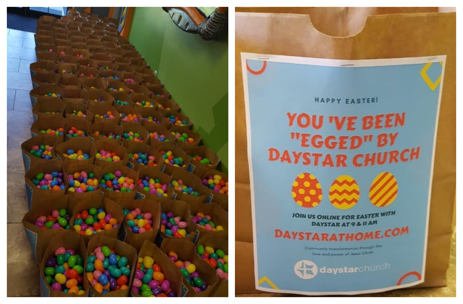 Daystar Global Outreach Director Chris Hopper explained, “For the last several years Daystar Church has hosted an Easter Egg drop at its Hartselle Campus, and this year, due to the nature of shelter in place, the church was forced to cancel the event. Rather than letting 25,000 plastic candy- and prize-filled eggs go to waste, Daystar employed the help of a team of volunteers equipped with masks and gloves to ‘egg’ the homes of as many families as they could reach. Members of Daystar recommended families in the area they knew who had children and then teams were sent to scatter the eggs on their front lawns so the kids would be surprised the next day.”