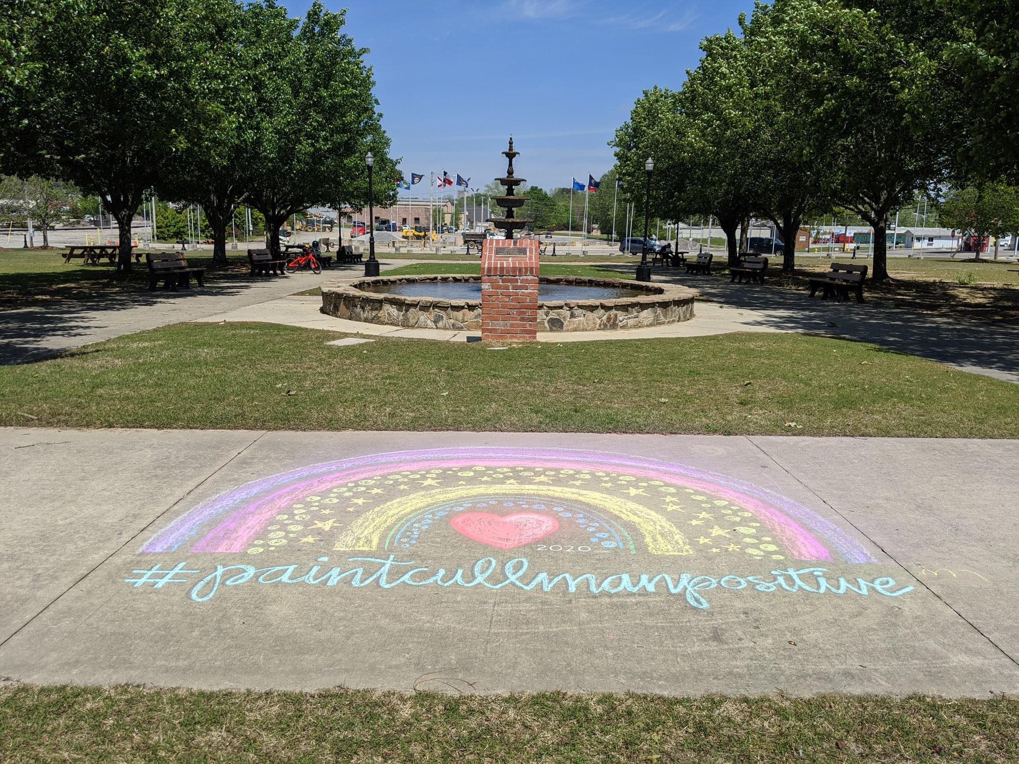 Local artist Emily Bussman created a beautiful chalk drawing at Depot Park to help launch the #PaintCullmanPositive campaign. Residents can see her artwork and contest entries on the CPRST Facebook page at www.facebook.com/cullmanparksrec.