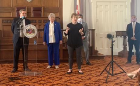 Snapshot from Tuesday's press conference with Gov. Kay Ivey (video capture)