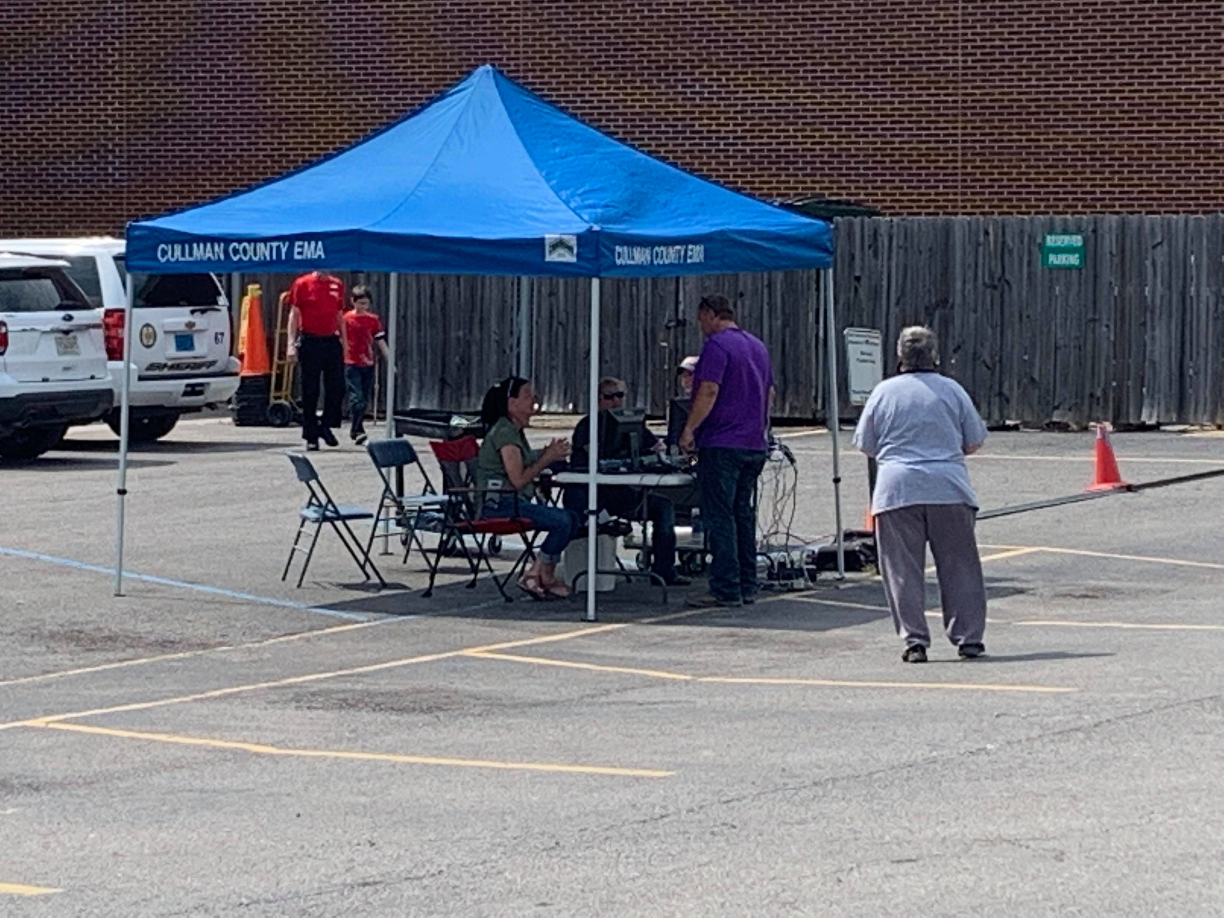 The tent at the Cullman County Courthouse went up Monday morning at 8 a.m. and will remain open until around 4 p.m. daily through Friday, weather-permitting.