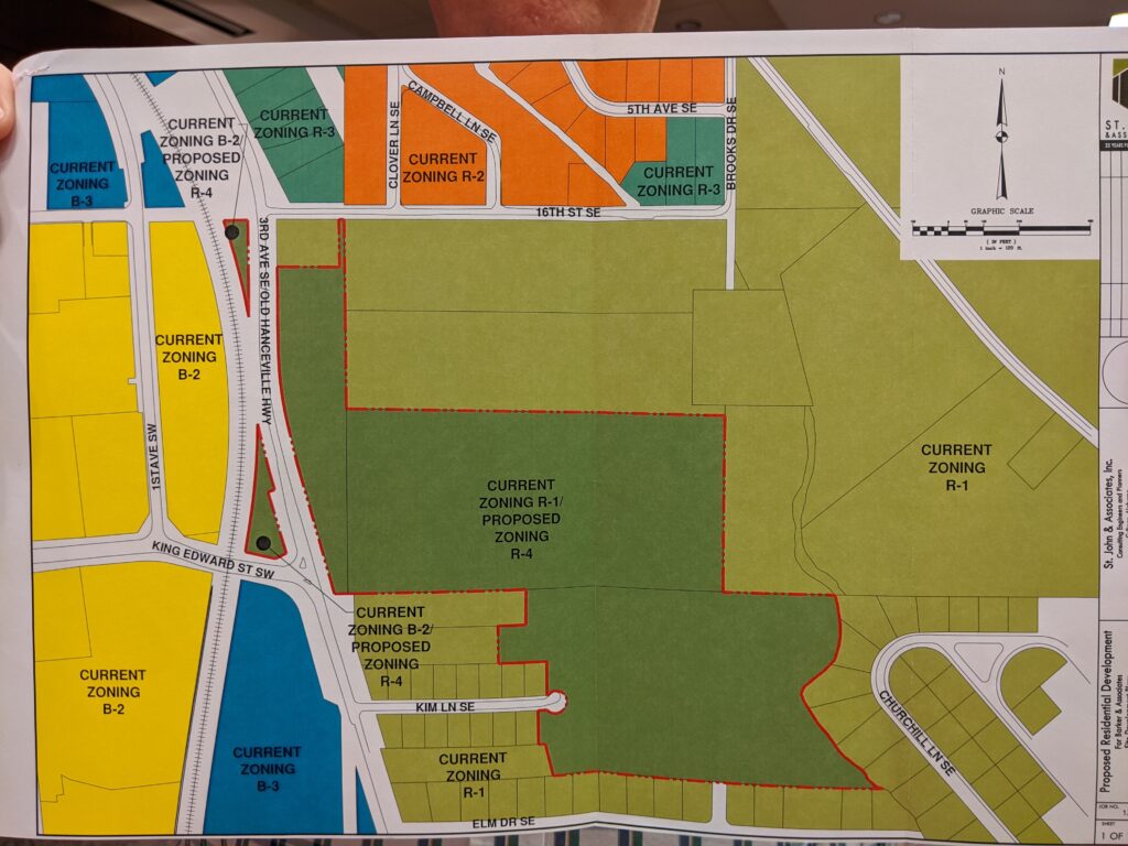 CULLMAN, Ala – The City of Cullman Planning Commission on Monday evening voted to recommend that the Cullman City Council rezone 40 acres east of Third Avenue Southeast/Old Hanceville Highway and fronting on that road at its intersection with King Edward Street from R-1 (low-density housing) to R-4 (high-density/apartments). The site was previously proposed as the new location for Desperation Church.